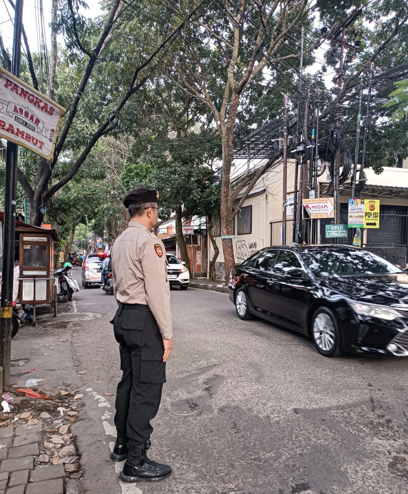Personil QR Polsek Sukasari Melaksanakan Giat Protap Yanmas Pagi Pengaturan Arus Lalulintas.