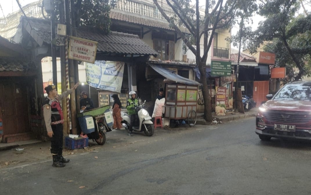 Polrestabes Bandung, Polda Jabar – Polsek Sukasari – Guna mengantisipasi terjadinya kemacetan di pagi hari QR Polsek Sukasari Lakukan Giat Protap Yanmas Pagi Pengaturan Arus Lalulintas di Jl.Sariasih Kelurahan Sarijadi Kecamatan Sukasari Kota Bandung.(2/10/2025)