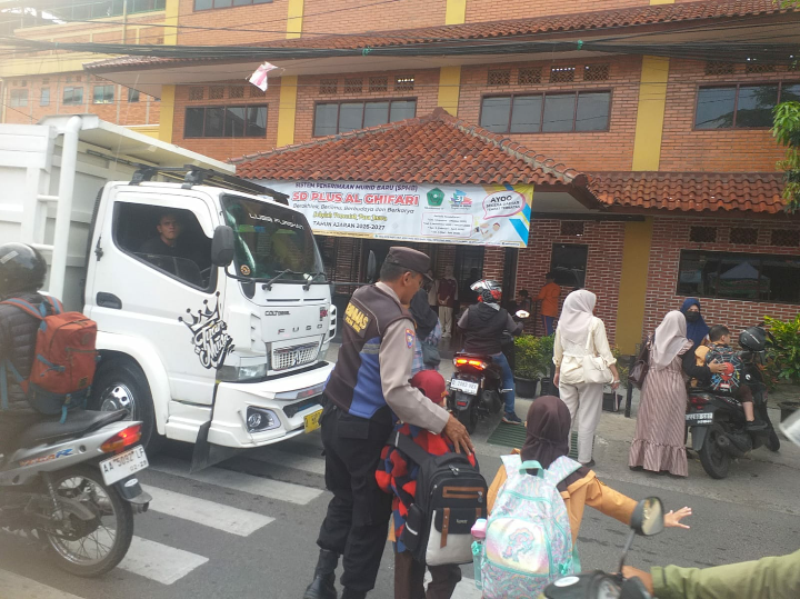 Personil Unit Binmas Polsek Arcamanik Lakukan Giat Pengaturan Arus Lalulintas pagi Hari