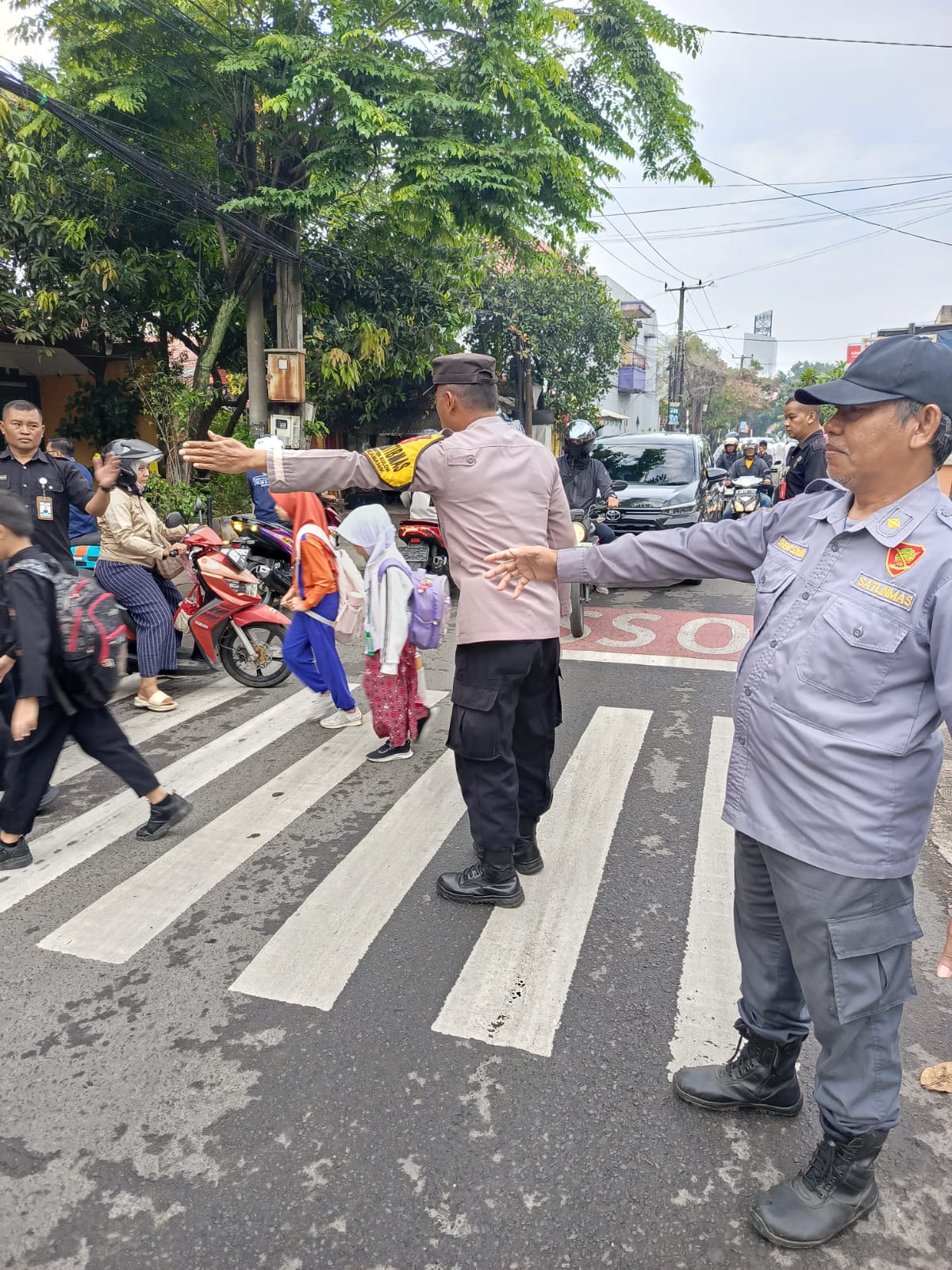 Personil Unit Binmas Polsek Arcamanik Lakukan Giat Pengaturan Arus Lalulintas pagi Hari