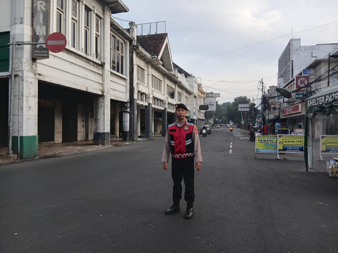 Personil Unit Samapta Polsek Sumur Bandung melaksanakan kegiatan rutin pelayanan masyarakat pengaturan arus lalu lintas
