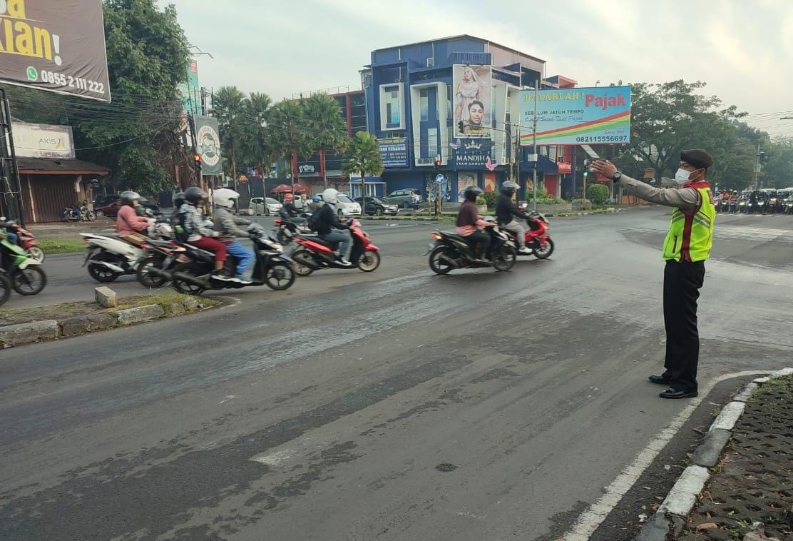 Polrestabes Bandung Personil Unit Lantas, Unit Samapta, Bhabinkamtibmas dan staf Polsek Lengkong Polrestabes Bandung melaksanakan pelayanan masyarakat dan pengaturan arus lalu lintas pagi di Jalan Buah batu, jalan Pelajar Pejuang 45, Jalan Gatot Subroto dan Jalan Asia Afrika Kota Bandung, Selasa (2/8/2022).