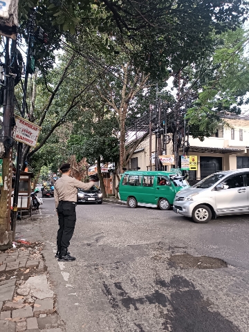 QR Polsek Sukasari Lakukan Giat Protap Yanmas Pagi Pengaturan Arus Lalulintas