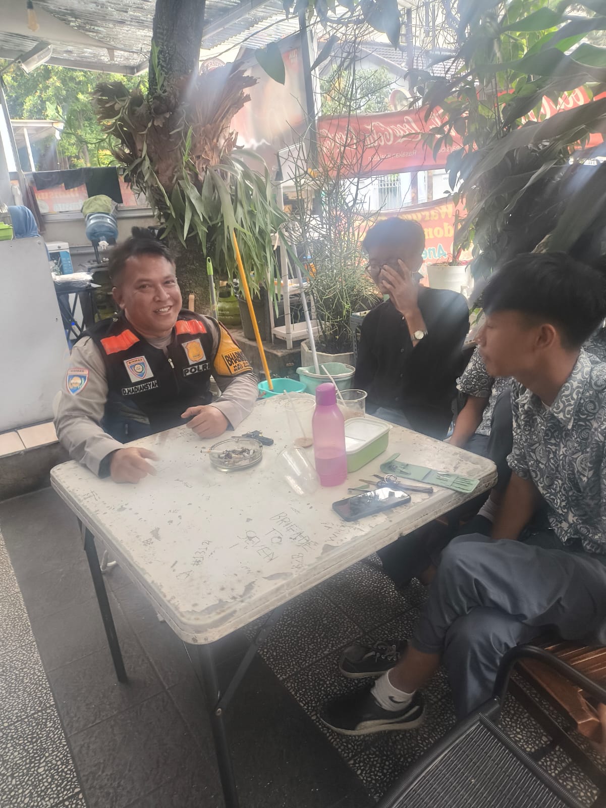 Bhabinkamtibmas Polsek Bandung Kidul mengunjungi salah satu Anak sekolah menengah atas (SMA) yang berada di Cafe paras Kel Batununggal Kec Bandung Kidul.Kamis (25/09/2025)