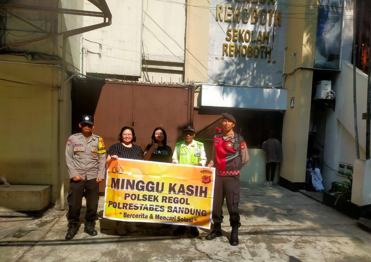 Polrestabes Bandung, Polda Jabar – Polsek Regol – Dalam rangka Menjaga HarKamtibmas, Panit Samapta Polsek Regol Iptu Suhartono bersama Piket Samapta, Bhabinkamtibmas, Intel dan Propam Polsek Regol melaksanakan Patroli Dialogis, Sambang dan Minggu Kasih Bersama Jemaat Gereja yang melaksanakan kegiatan Ibadah kebaktian Rutin di wilayah hukum Polsek Regol Polrestabes Bandung. (Minggu, 21/09/2025).