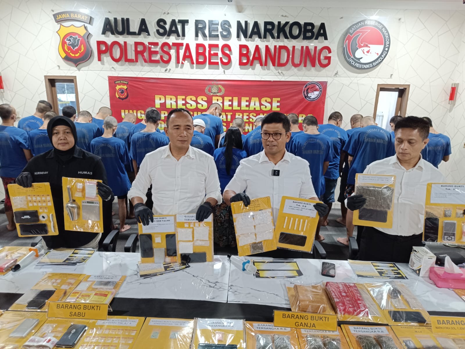 Selain itu, ada 30 butir extacy, kemudian 200 gram lebih tembakau sintetis, dan 100 butir psikotropika dan alat pendukung peredaran narkoba seperti timbangan digital dan puluhan ponsel.