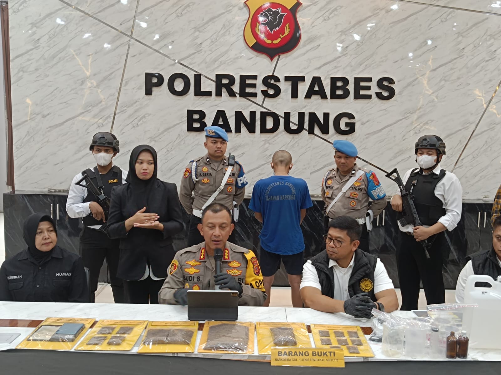 Kapolrestabes Bandung Kombes Pol Dr. Budi Sartono. S.i,k.M.Si,M.Han mengatakan, petugas Satresnarkoba Polrestabes Bandung melaksanakan penyelidikan memantau lokasi yang menjadi tempat produksi dan peredaran tembakau sintetis di Kota Bandung.