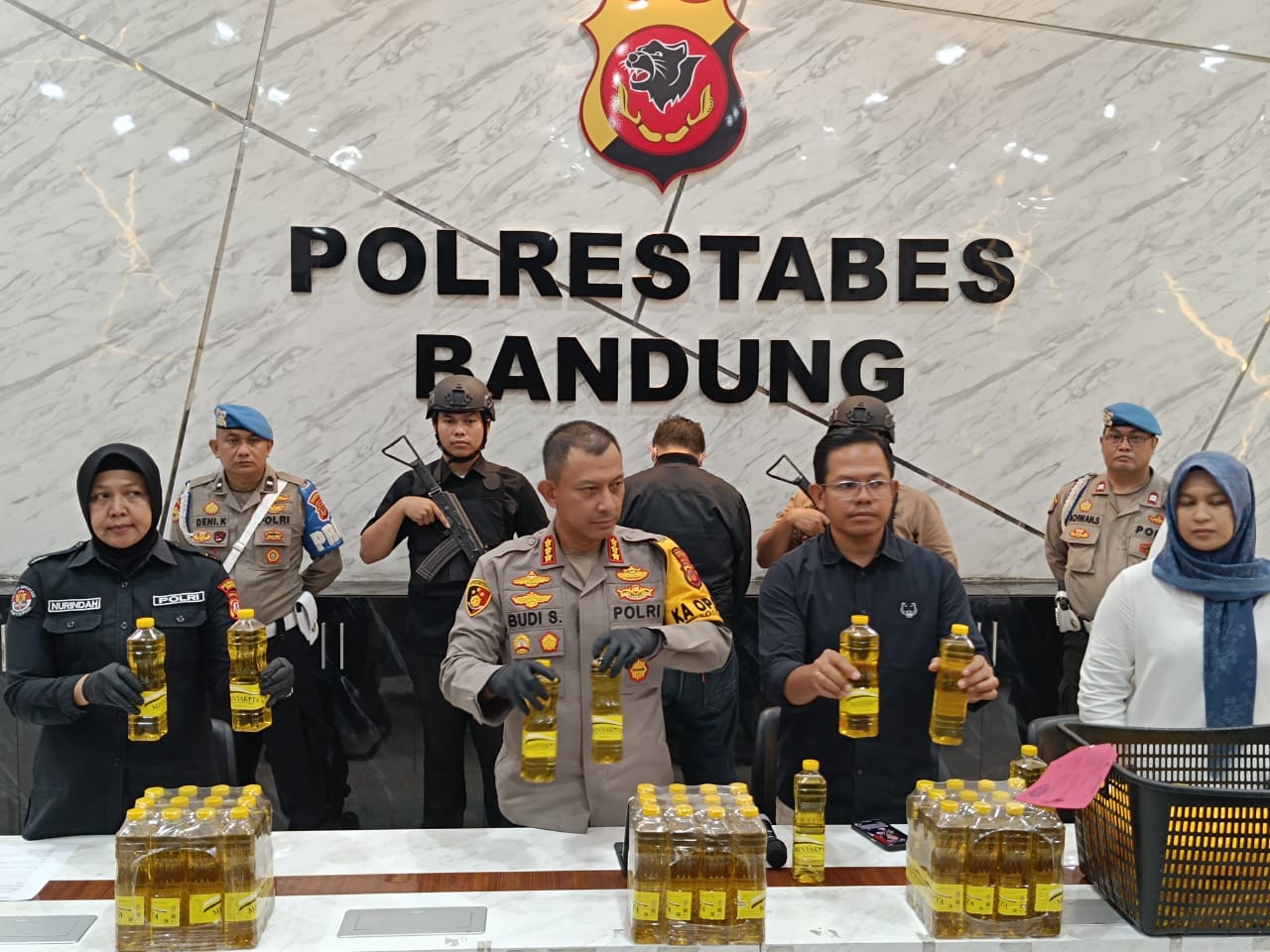 Kapolrestabes Bandung Kombes Pol Dr. Budi Sartono, S.I.K., M.Si., M.Han. mengatakan pelaku DR sudah menjual minyak curah menggunakan kemasan Minyakita tanpa izin perdagangan selama tujuh bulan. Pelaku mencantumkan nomor izin edar BPOM dan barcode palsu.