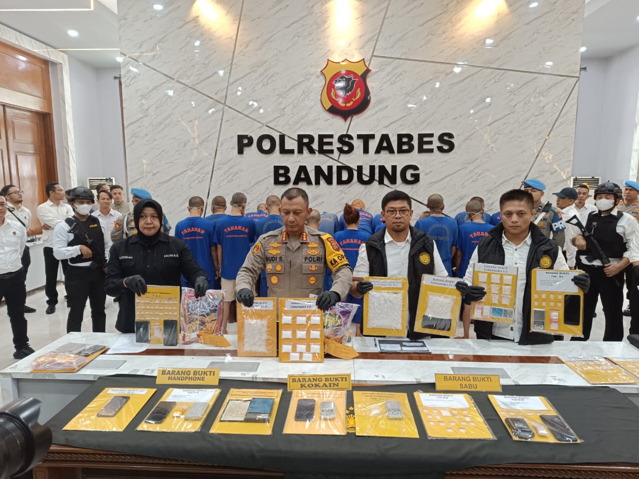 POLRESTABES BANDUNG Satresnarkoba Polrestabes Bandung menangkap YP, pengedar narkoba, anggota sindikat Medan-Malaysia di Kecamatan Cimaung, Kabupaten Bandung. Dari tangan YP, polisi menyita 260 gram kokain dan 1 kg sabu.
