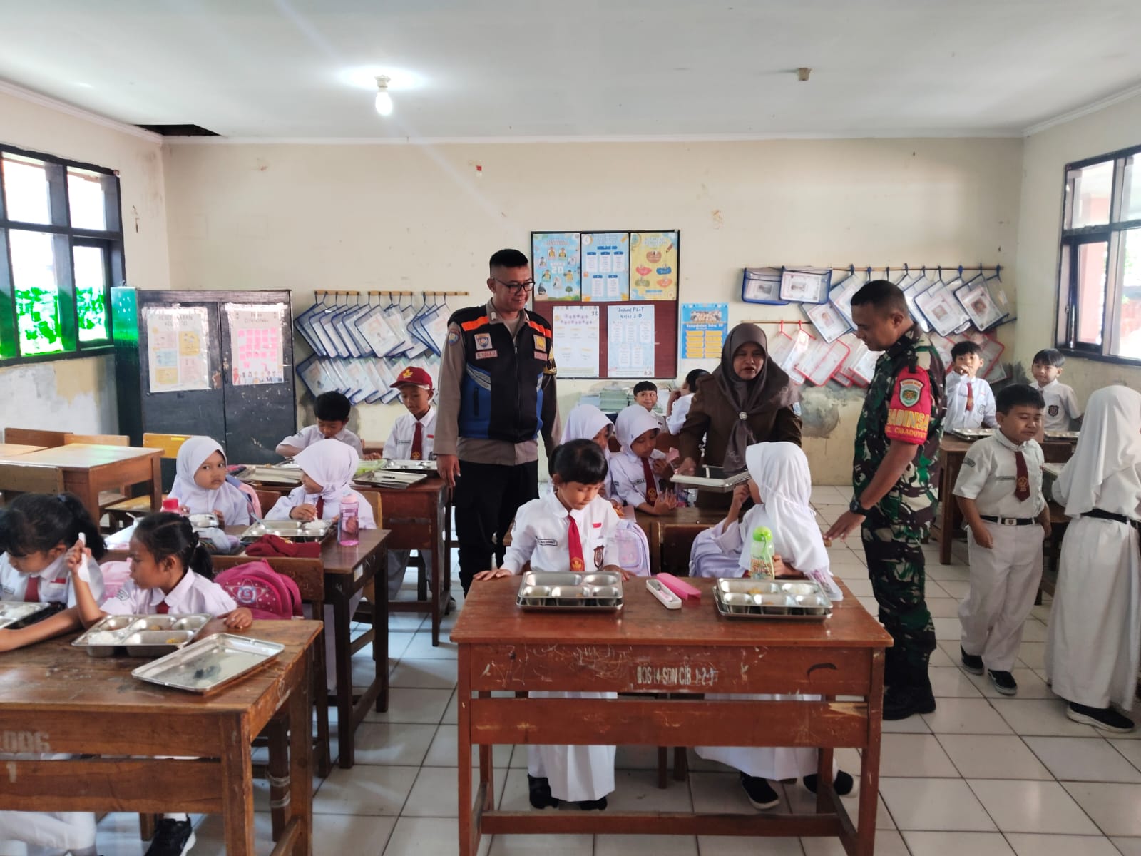 Polrestabes Bandung Polda Jabar Polsek Bojongloa kidul – Dalam rangka mendukung program pemenuhan gizi bagi anak-anak usia sekolah, Bhabinkamtibmas Kelurahan Cibaduyut Bripka Cecep Yoga bersama Babinsa Serma M. Rifai melaksanakan kegiatan monitoring pembagian Makanan Bergizi Gratis (MBG) di SDN 148 Cibaduyut,