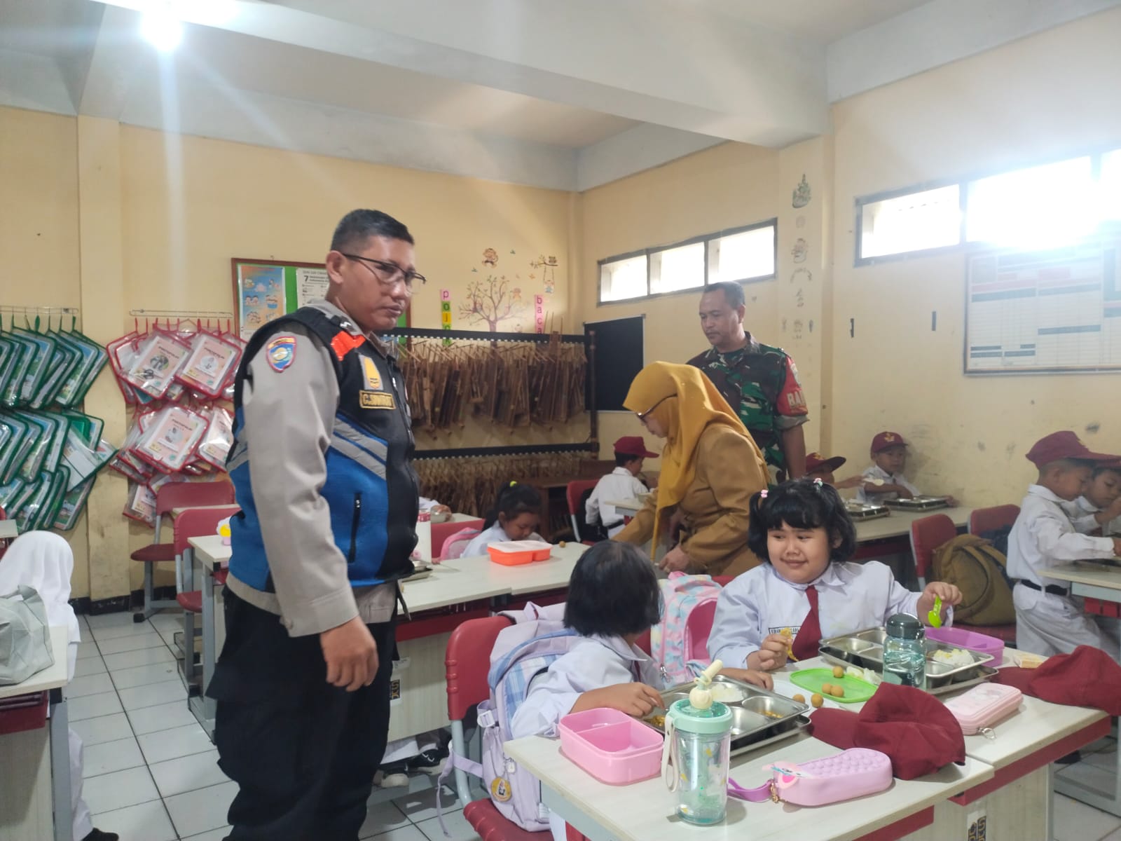 Polrestabes Bandung Polda Jabar Polsek Bojongloa Kidul – Dalam rangka mendukung program pemerintah terkait pemenuhan gizi anak usia sekolah, Bhabinkamtibmas Kelurahan Cibaduyut Kidul Aipda Cucu Sumirat bersama Babinsa Pelda Apip Dawas melaksanakan giat monitoring kegiatan Pembagian Makanan Bergizi Gratis (MBG) di SDN 229 yang berlokasi di Jl. Gedung Songo, Komplek Cibaduyut Permai, RT 03 RW 02, Kelurahan Cibaduyut Kidul, Kecamatan Bojongloa Kidul, Kota Bandung.