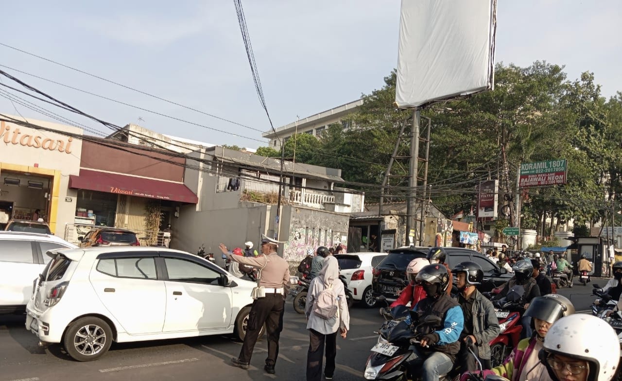 Antisipasi kemacetan pagi hari, personil Lalu lintas Polsek Sukasari melaksanakan pengamanan jalur di titik rawan kemacetan Wilayah Hukum Polsek Sukasari Polrestabes Bandung.