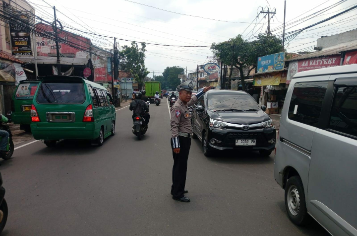 Polrestabes Bandung, Polda Jabar Polsek Babakan Ciparay – Antisipasi kemacetan siang hari, Personil lalulintas Polsek Babakan Ciparay melaksanakan pengamanan jalur di titik rawan kemacetan Wilayah Hukum Polsek Babakan Ciparay Polrestabes Bandung.(13/10/2025)