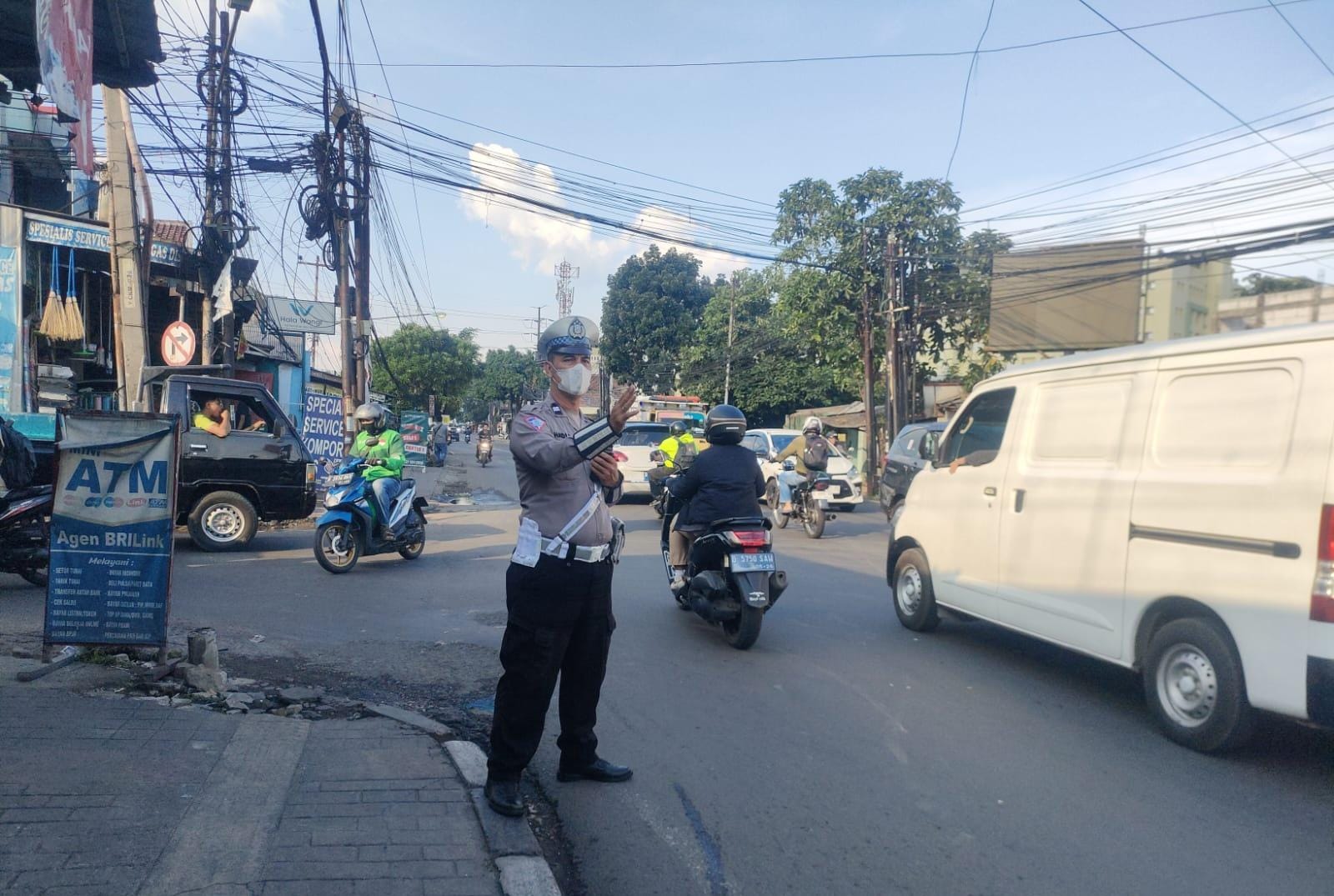 Polrestabes Bandung, Polda Jabar Polsek Babakan Ciparay – Antisipasi kemacetan siang hari, Personil lalulintas Polsek Babakan Ciparay melaksanakan pengamanan jalur di titik rawan kemacetan Wilayah Hukum Polsek Babakan Ciparay Polrestabes Bandung.(14/10/2025)