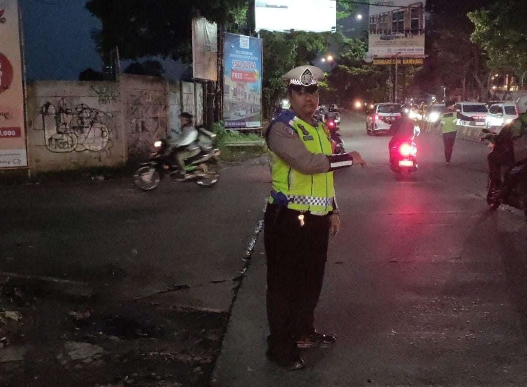 Unit Lantas Polsek Kiaracondong Polrestabes Bandung Laksanakan Pengawasan dan Pengaturan Lalulintas di Malam Hari