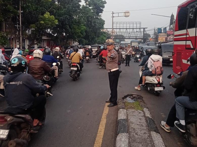 Unit Lantas Polsek Kiaracondong Polrestabes Bandung Laksanakan Pengawasan dan Pengaturan Lalulintas di Pagi Hari