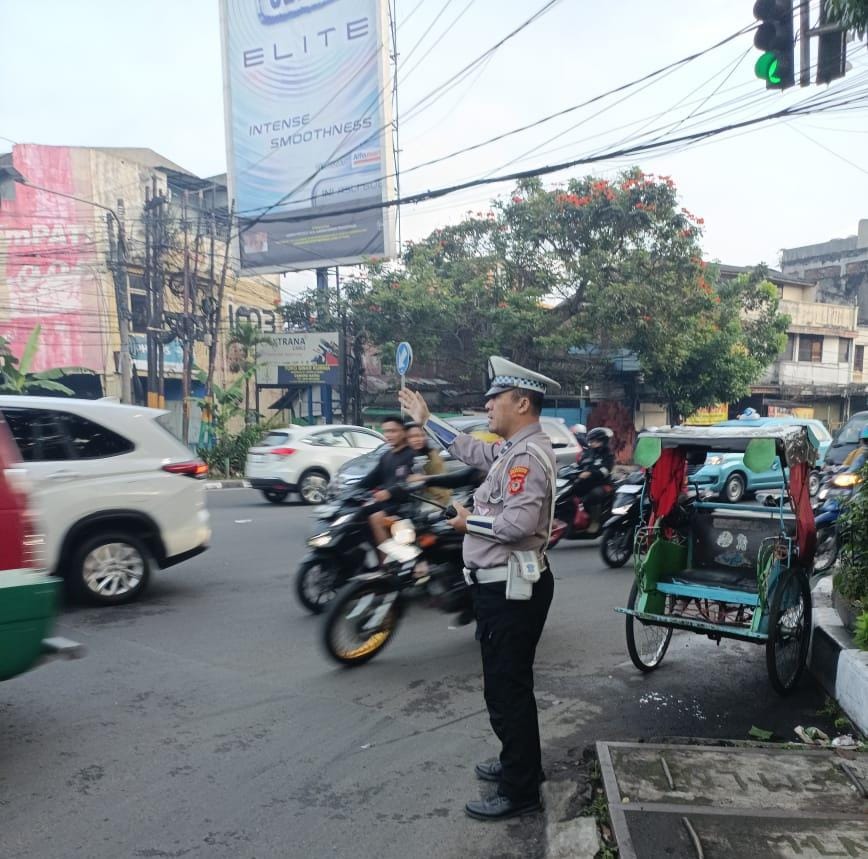 Unit Lantas Polsek Kiaracondong Polrestabes Bandung Laksanakan Pengawasan dan Pengaturan Lalulintas di Pagi Hari