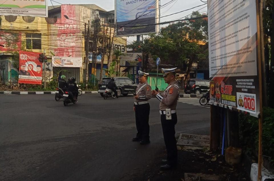 Unit Lantas Polsek Kiaracondong Polrestabes Bandung Laksanakan Pengawasan dan Pengaturan Lalulintas di Pagi Hari