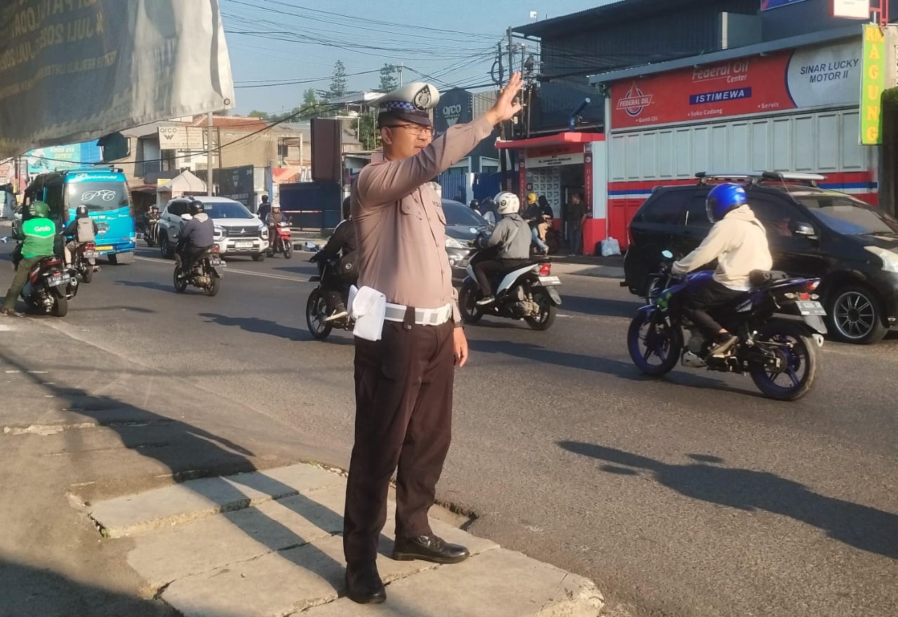 Upaya mengantisipasi terjadinya kepadatan kendaraan di pagi hari, Personel Unit Lalu Lintas Polsek Antapani Polrestabes Bandung melaksanakan kegiatan penjagaan dan pengaturan arus lalu lintas pada pagi hari di sepanjang Jalan A.H. Nasution, wilayah hukum Polsek Antapani, Rabu (8/10/2025).