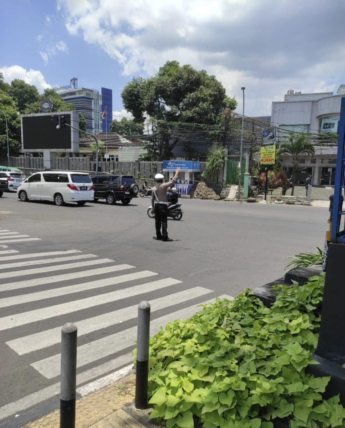 Upaya Ciptakan Arus Lalulintas Lancar Unit Lalulintas Polsek Sukasari Lakukan Giat Pengaturan Arus Lalulintas Siang Hari.