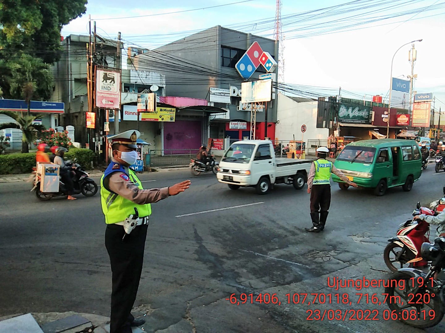 Rabu, 23 Maret 2022 mulai Jam 06.00 Wib, jajaran Samapta dan Lantas Polsek Ujungberung Polrestabes Bandung melaksanakan pengaturan lalu lintas, personil ditempatkan di beberapa titik atau pos gatur guna mengantisipasi kemacetan lalu lintas pagi.