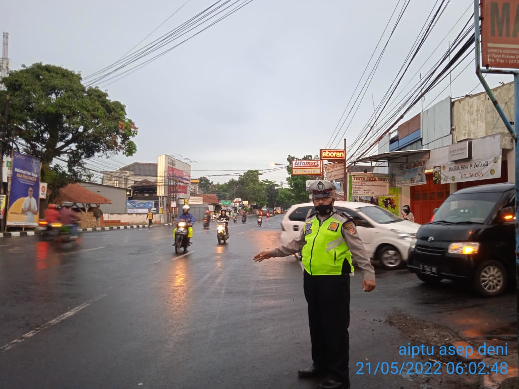 Polrestabes Bandung jajaran Samapta dan Lantas Polsek Ujungberung Polrestabes Bandung melaksanakan pengaturan lalu lintas, personil ditempatkan di beberapa titik atau pos gatur guna mengantisipasi kemacetan lalu lintas pagi.