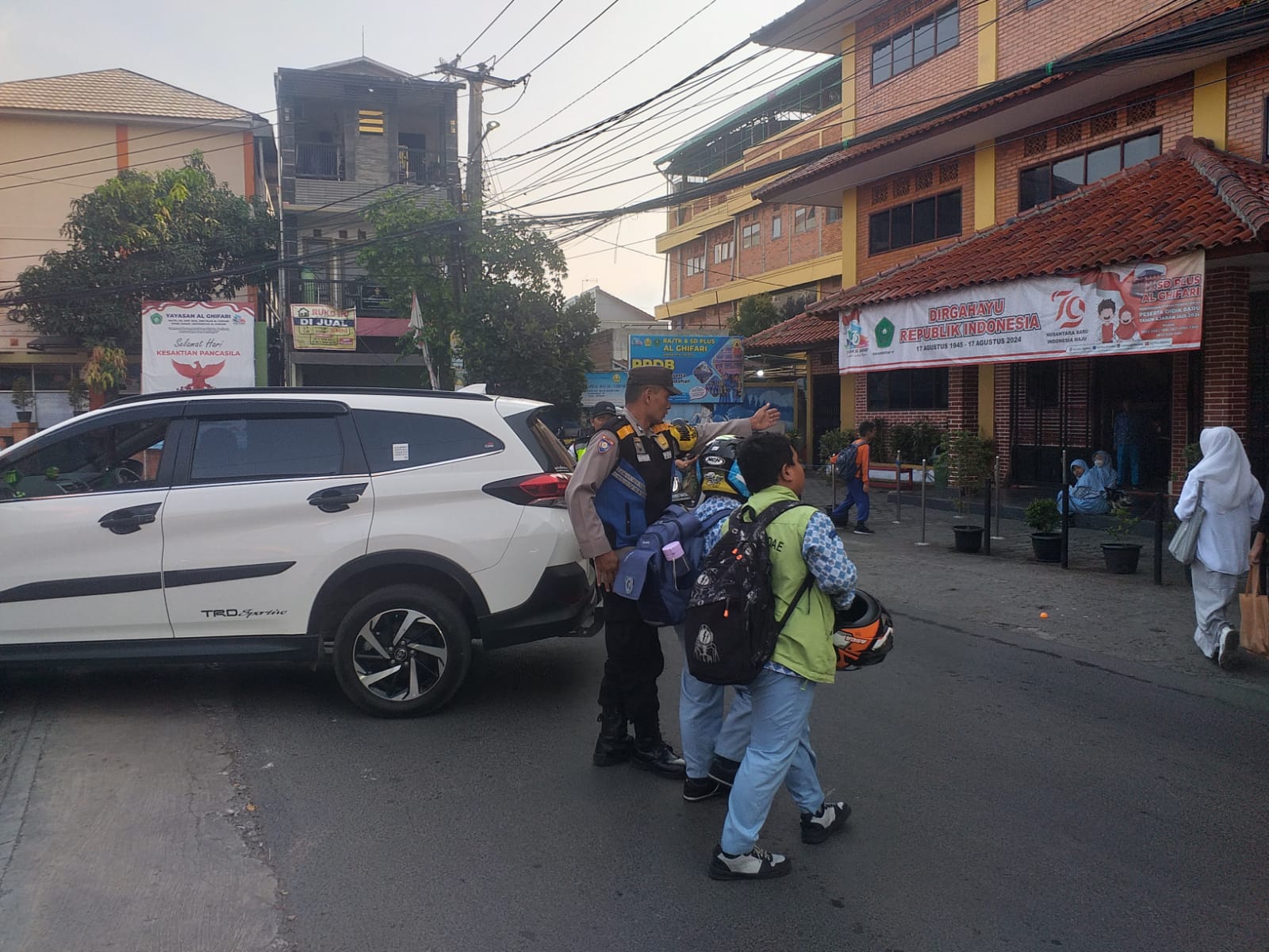 Antisipasi kemacetan pagi personel Unit Binmas Polsek Arcamanik melaksanakan pelayanan masyarakat dan pengaturan Lalu lintas di tempat tempat rawan kemacetan seperti Di Jl. Arcamanik Endah, Cingised dan Pertigaan Cisaranten Kulon.